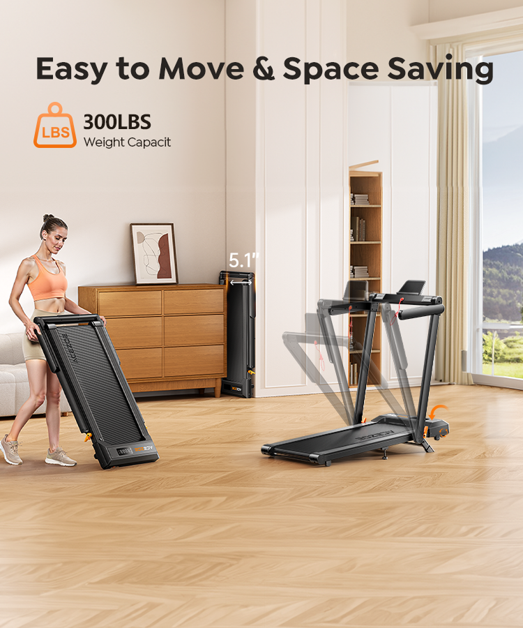 Built with a heavy-duty 2.5HP motor, this treadmill supports up to 300 lbs with ease. The advanced shock-absorbing design ensures ultra-quiet operation, making it the perfect choice for apartments and shared offices without disturbing those around you.